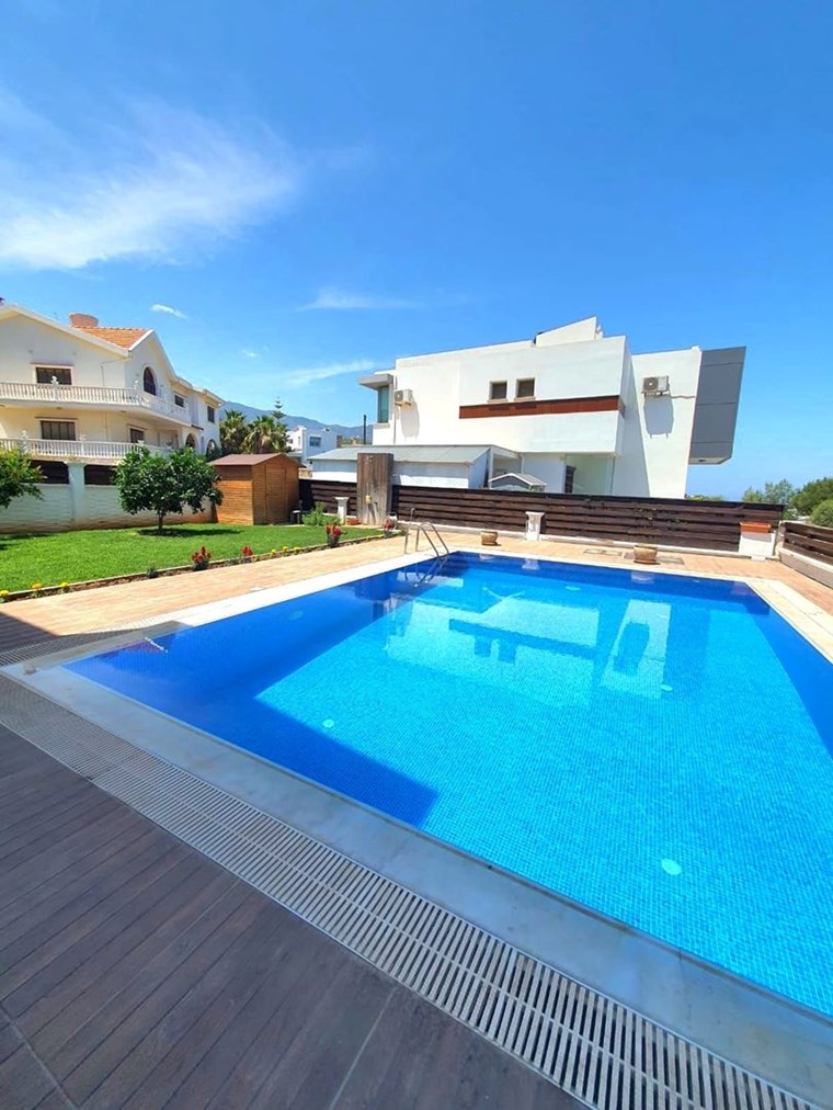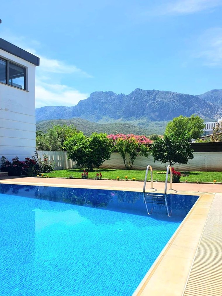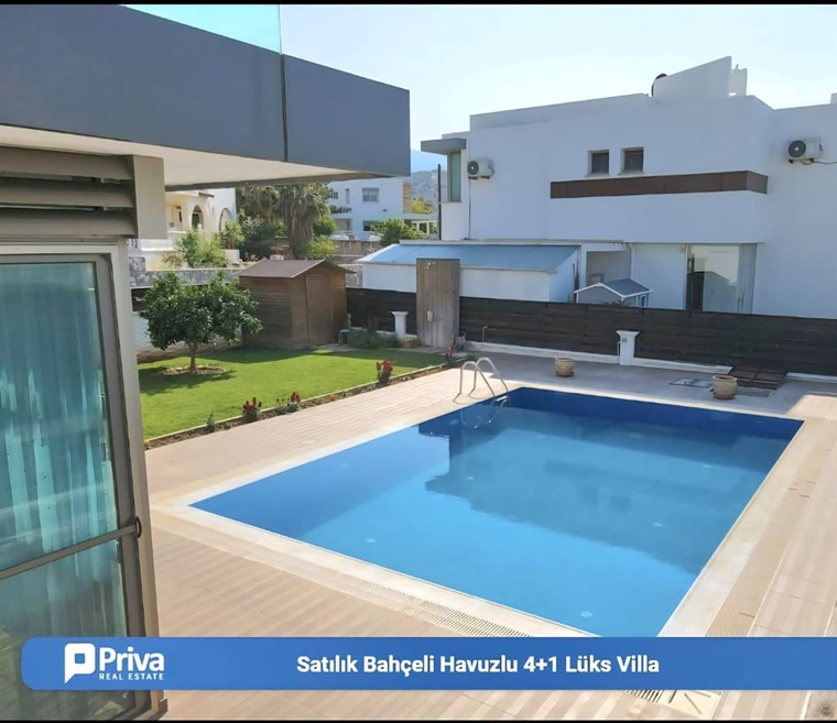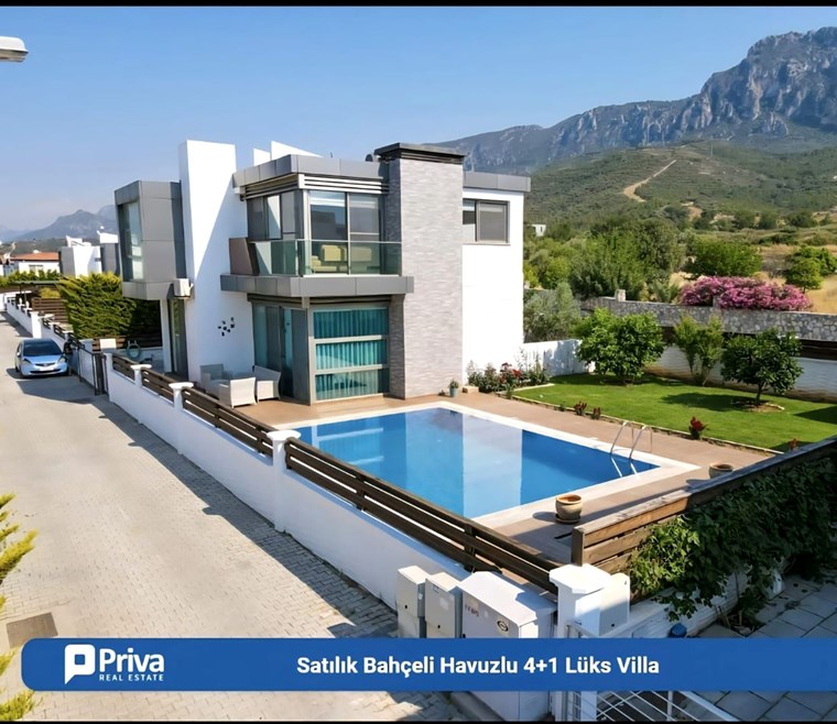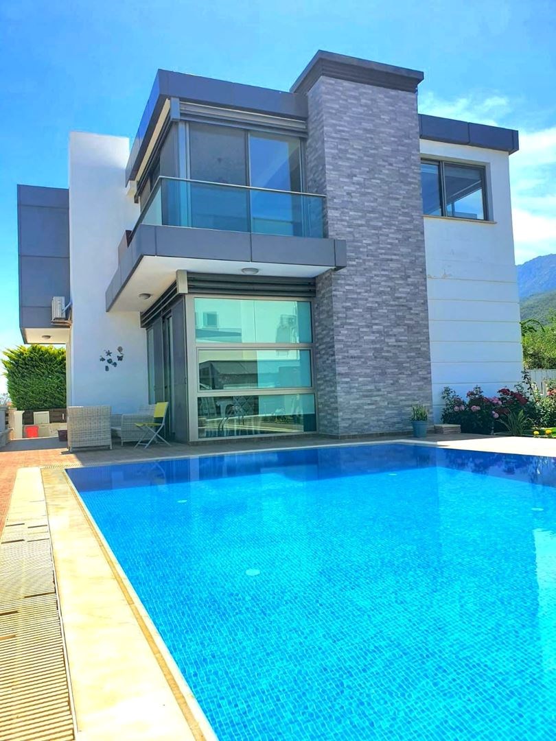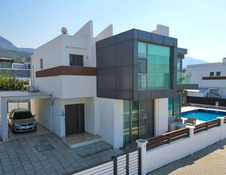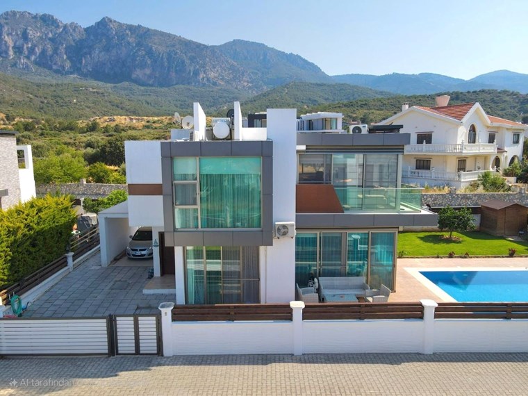 MODERN TASARIM VE AVANTAJLI KONUMU İLE Girne, Alsancak’ta Satılık, Eşyalı 4+1 Villa Özel Havuzlu ve Bahçeli Villa. Modern mimarili villamız, bahçeli ve özel havuzlu olup sınır duvarları ile ayrılmış kendine özel yaşam alanı içinde, huzurlu ve konforlu bir özel yaşam alanına sahiptir. İç mekan 150m2, dış mekan 500 m2 alana sahiptir. Villamız alt katta 1 oda, salon, mutfak ve üst katta 3 oda ve 2 banyolu, ev sahibi tarafından özenle seçilmiş şık mobilya tasarımı ile modern ve özel bir yaşam alanı sunmaktadır. Girne’nin en büyük otellerine çok yakın mesafede olması yatırım amaçlı Alıcılar için yüksek kira getirisi ile 18 Yılda yatırım geri dönüşüne sahiptir. Özellikleri: Villamızı ayrıştıran en önemli özelliği mükemmel konumudur. Şehir merkezi, çevre yoluna yakın ve hızlı ulaşım imkanına sahiptir.