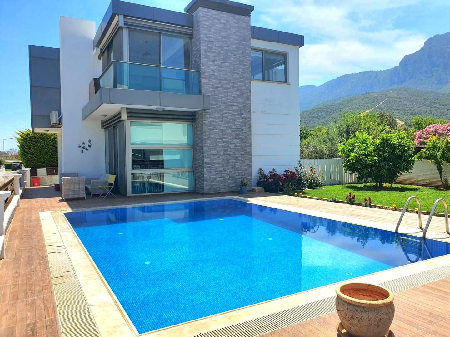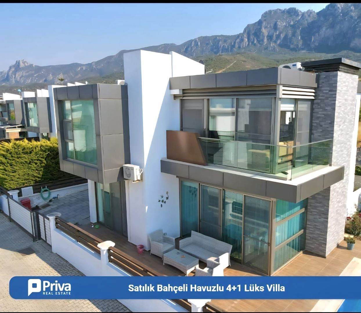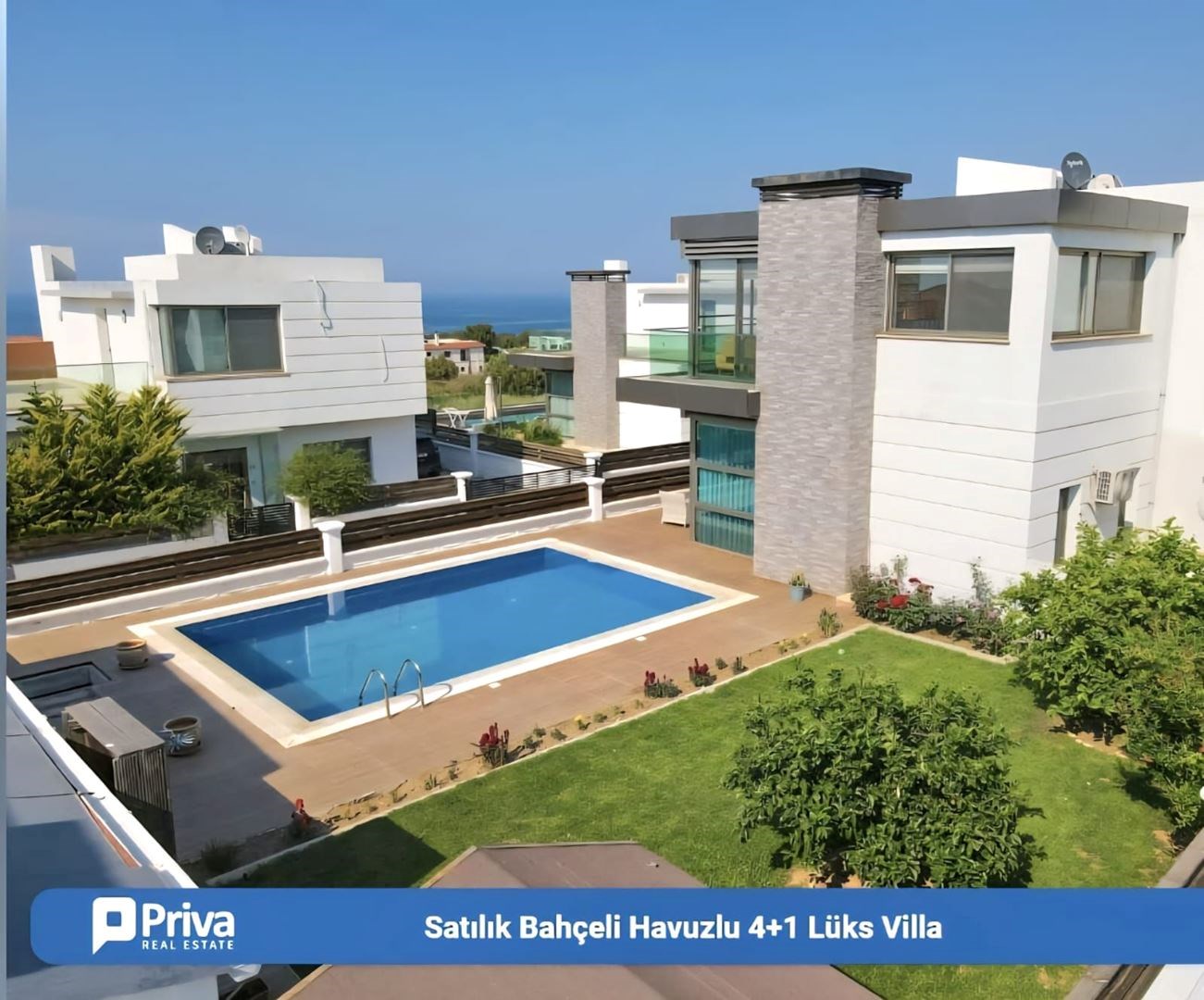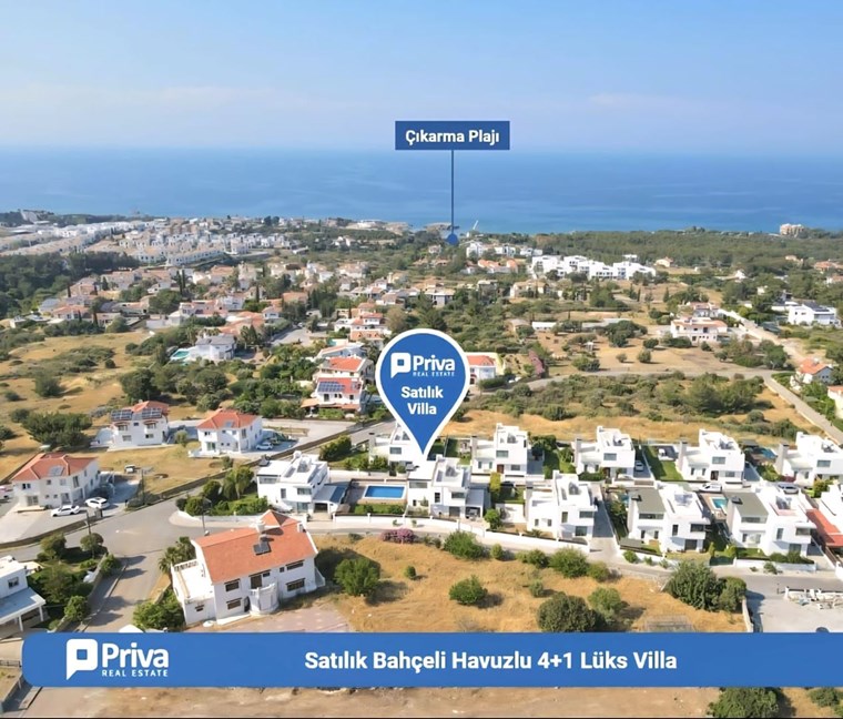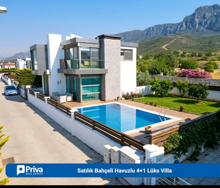 MODERN TASARIM VE AVANTAJLI KONUMU İLE Girne, Alsancak’ta Satılık, Eşyalı 4+1 Villa Özel Havuzlu ve Bahçeli Villa. Modern mimarili villamız, bahçeli ve özel havuzlu olup sınır duvarları ile ayrılmış kendine özel yaşam alanı içinde, huzurlu ve konforlu bir özel yaşam alanına sahiptir. İç mekan 150m2, dış mekan 500 m2 alana sahiptir. Villamız alt katta 1 oda, salon, mutfak ve üst katta 3 oda ve 2 banyolu, ev sahibi tarafından özenle seçilmiş şık mobilya tasarımı ile modern ve özel bir yaşam alanı sunmaktadır. Girne’nin en büyük otellerine çok yakın mesafede olması yatırım amaçlı Alıcılar için yüksek kira getirisi ile 18 Yılda yatırım geri dönüşüne sahiptir. Özellikleri: Villamızı ayrıştıran en önemli özelliği mükemmel konumudur. Şehir merkezi, çevre yoluna yakın ve hızlı ulaşım imkanına sahiptir.